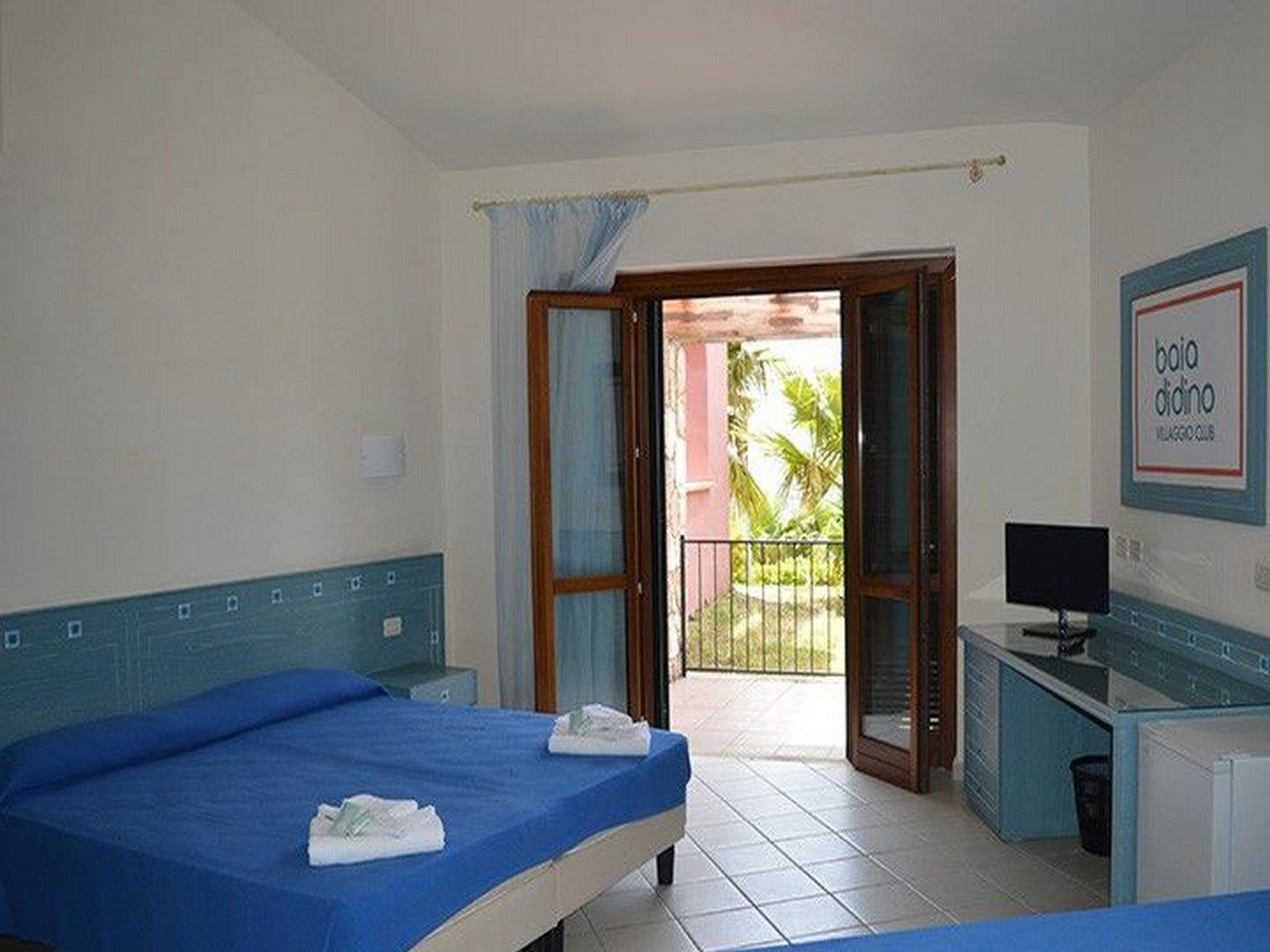 Dispone di 147 camere inserite in un’area residenziali a piano terra con patio esterno attrezzato; possiedono tutte ingresso indipendente ed area esterna attrezzata. Sono ampie e ben arredate, dotate di aria condizionata autonoma, servizi con vasca e asciugacapelli, tv. Le camere sono suddivise in: Camere Comfort, dislocate in zona panoramica immersa nel verde e distanti circa 500 metri dal corpo centrale e dai servizi. Camere Superior situate nei pressi del corpo centrale della struttura.