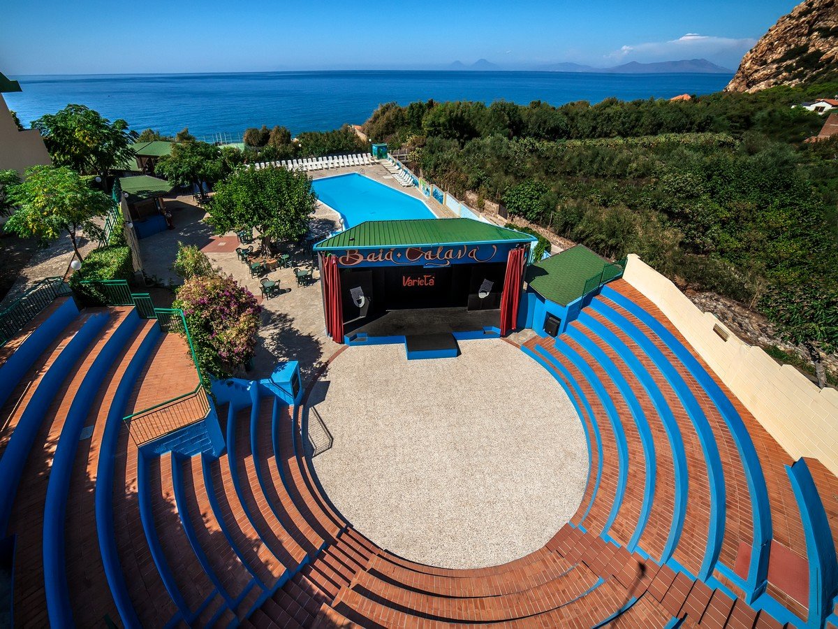 Reception 24 ore con servizio di cassette di sicurezza, sala ristorante sul mare, due bar, tabacchi, due ascensori che collegano le camere più panoramiche e tranquille con la zona centrale del Villaggio, sala TV multifunzionale, animazione diurna e serale, mini club, anfiteatro, spiaggia con lettini e ombrelloni, solarium, ampie terrazze, piscina, campi sportivi da tennis, calcetto, pallavolo, basket, ping-pong ,bocce, gazebo per tornei di carte e giochi vari, boutique, market con edicola, ufficio escursioni, diving, parapendio. Animazione diurna e serale con spettacoli commedie ed intrattenimenti vari, balli di gruppo, uso gratuito di tutte le attrezzature sportive del Villaggio. Il Villaggio dispone di un’area attrezzata sulla spiaggia di Calavà che dista dai 60 ai 200 metri dalle soluzioni abitative distribuite all’interno del villaggio. Il servizio spiaggia comprende 1 ombrellone + 2 lettini a camera. Il servizio è operativo dalle 9 alle 19. A disposizione degli ospiti un servizio navetta da/per la spiaggia operativo ad orari prestabiliti: dalle 8 alle 9:30, dalle 11:30 alle 13:30, dalle 14 alle 15, dalle 18:45 alle 20.