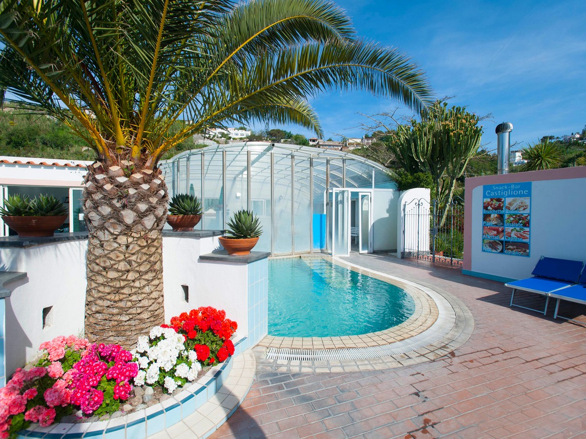 Di grande dimensione, in acqua geo-termica naturale, calda tutto il giorno ed in tutte le stagioni, permette di fare il bagno e trascorrere momenti di relax unici ed indimenticabili. Questa piscina dispone di 3 cascate idromassaggio cervicali ed ai suoi bordi è presente l’area terrazzo panoramico con all’orizzonte l’isola di Capri e la vista emozionante del passaggio lungo la costa ischitana delle grandi navi da crociera che attraversano il mare Mediterraneo. A disposizione dei nostri ospiti lettini ed ombrelloni fino ad esaurimento e area bar/saletta tv. Area piscine per bambini, con due vasche a diversa profondità in acqua minerale (non riscaldate).
