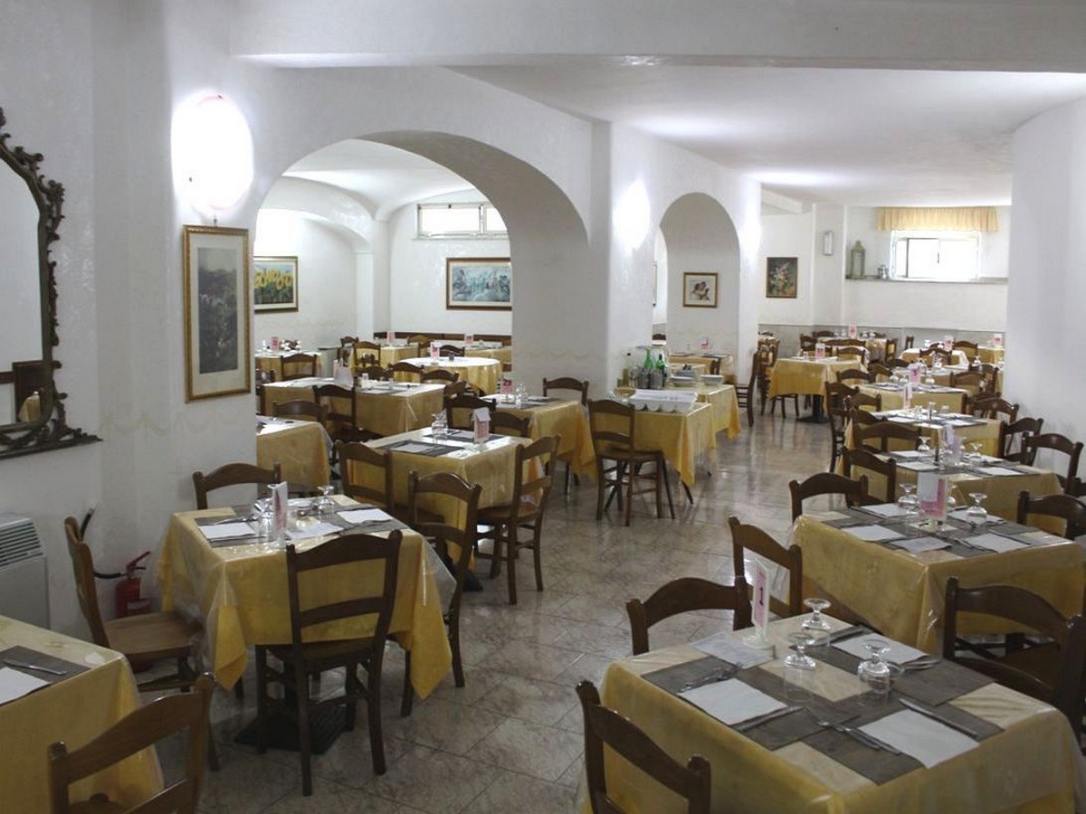 Composto da due spaziose aree interne che possono accogliere oltre 200 persone e rendono i momenti dedicati al pasto rilassanti e piacevoli con uno staff che dedica il proprio lavoro alla disponibilità verso i nostri ospiti. La nostra cucina prevede l’utilizzo dei prodotti semplici della tradizione regionale, le loro preparazioni da parte del nostro chef insieme al suo staff di assistenti mirano a servire alla nostra clientela piatti dal sapore e dai gusti tipici del “Italian Food Style”.Colazione a buffet dolce (non serviamo salato). Antipasto a buffet, dal quale il cliente può scegliere ogni giorno di stuzzicare prima del pranzo e della cena, le verdurine miste crude e cotte che presentiamo variandone di giorno in giorno la scelta. Menù giornaliero a scelta fra tre prime e tre secondi piatti.
