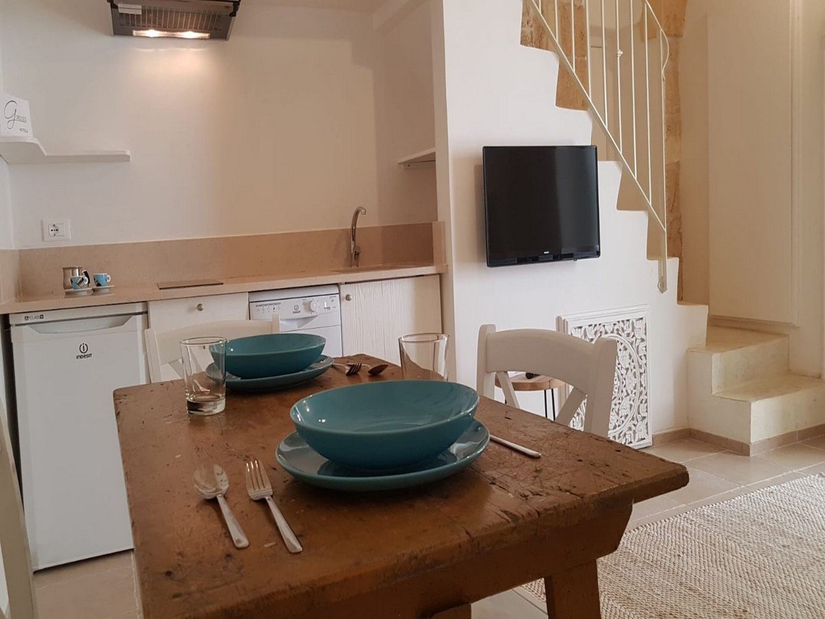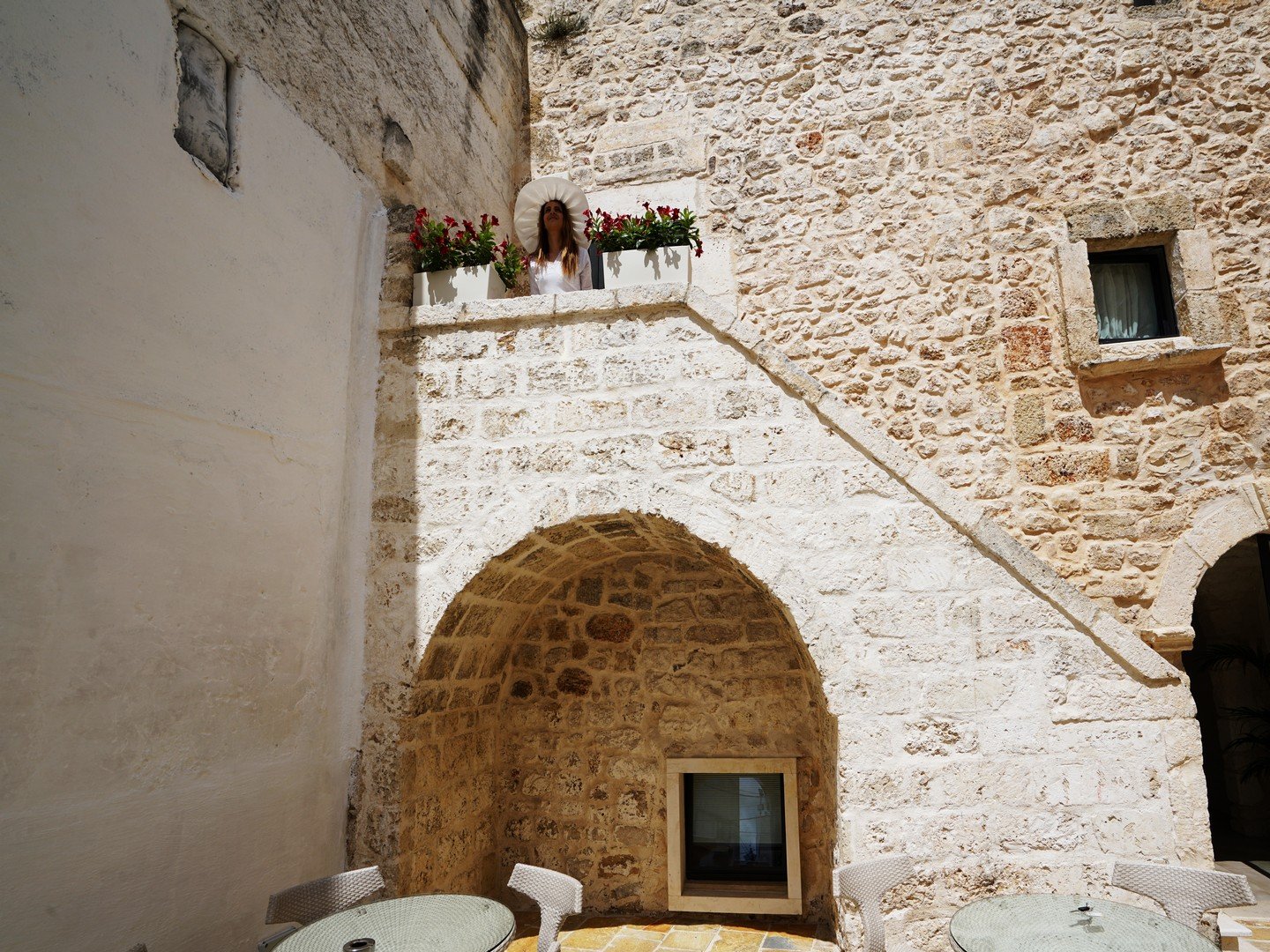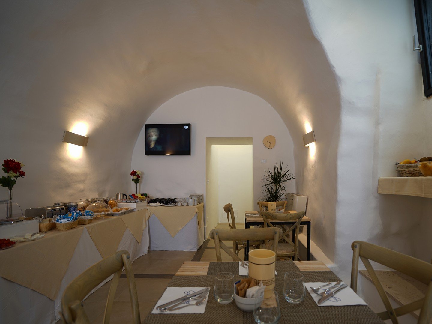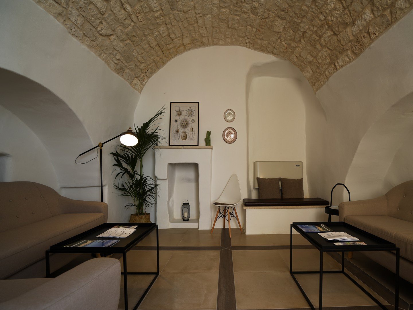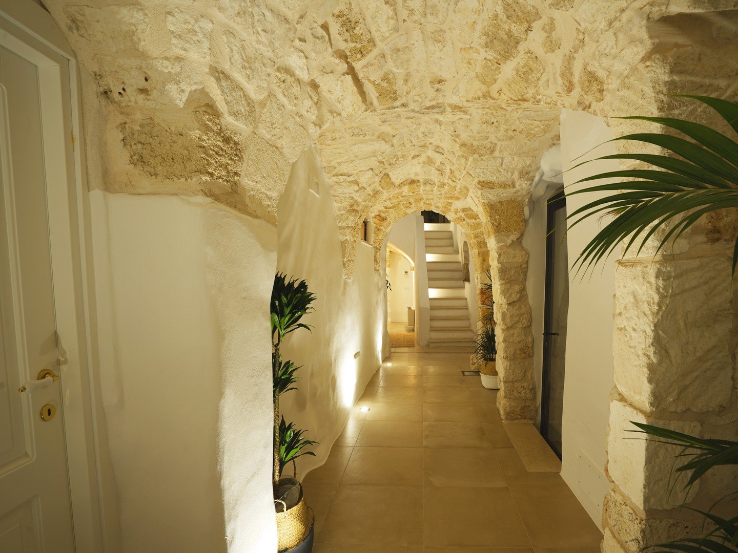Situato nel centro storico del paese di Carovigno (BR), la struttura si compone da una parte centrale, che si trova nelle vicinanze del Castello Dentice di Frasso, mentre le restanti unità si districano tra le viuzze e le case bianche del cosiddetto “Rione Terra”, un affascinante centro storico tipico dei comuni dell’Alto Salento.