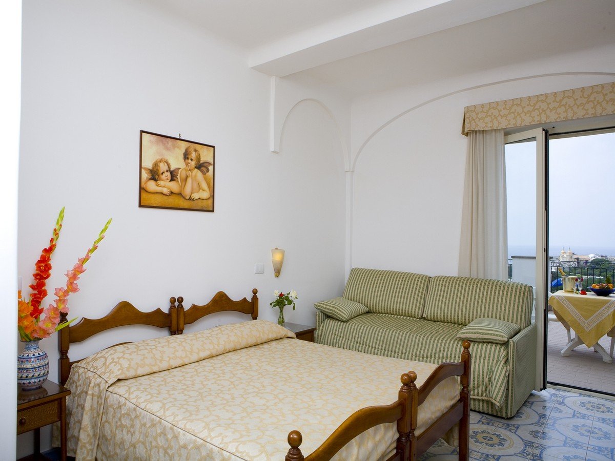 Le camere sono disposte in diversi edifici, posizionate all'interno dello stabile principale (dotato di ascensore) o in stabili esterni, situate quindi intorno alla piscina esterna/terrazzo panoramico. Sono tutte dotate di: wc, doccia, fono a parete, riscaldamento/aria condizionata (attiva dal 15.6 al 15.9), tv, cassaforte, mini-frigo. Le soluzioni "Standard" dispongono tutte di terrazzo o finestra. E possibile richiedere, con supplemento, camera con vista sul mare. Camera Economy: camera posta ai piani bassi con porta di ingresso e finestra. Camera Standard: camera con finestra piano terra. primo o secondo piano senza ascensore.
