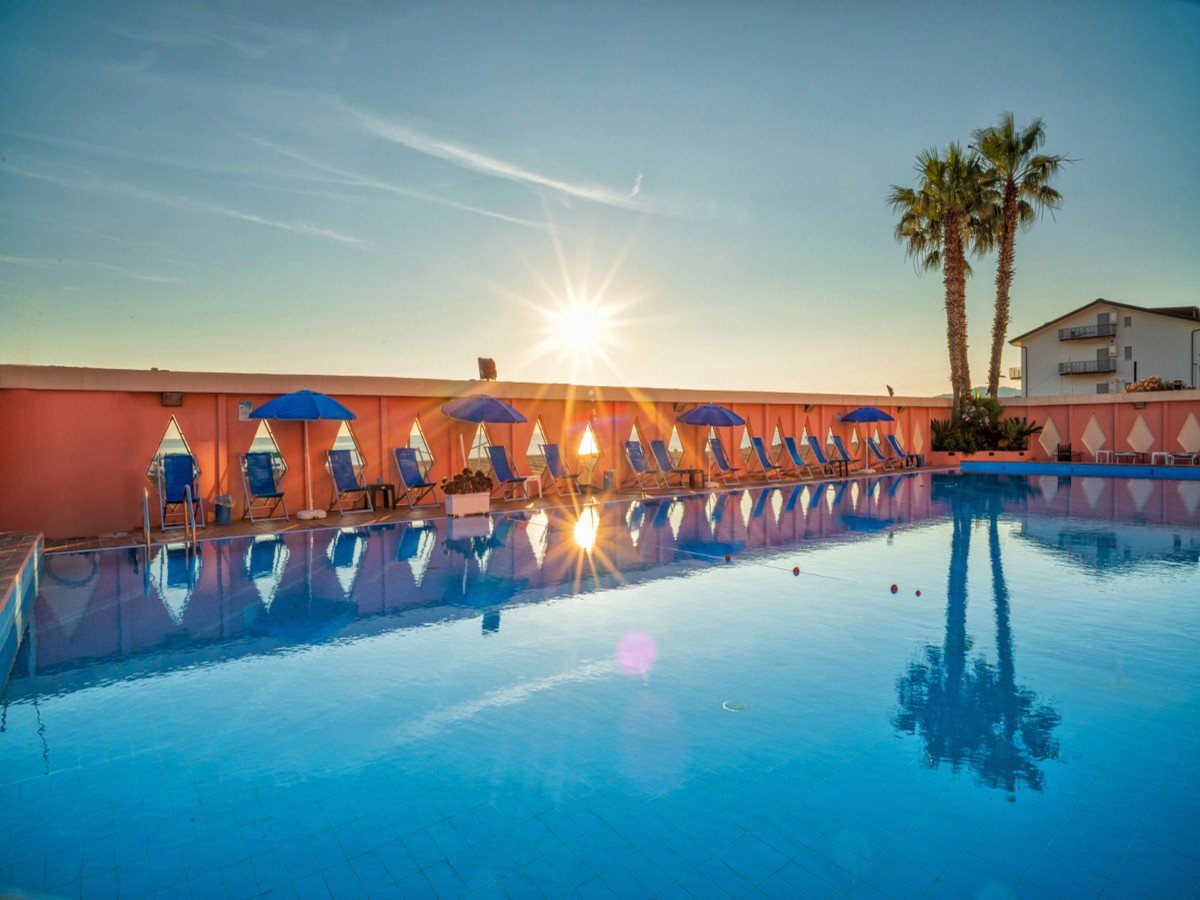 Ricevimento con portineria h24, 2 ascensori, hall, salottini per lettura, 2 bar di cui 1 in piscina, sala colazione, ristorante, connessione wi-fi nelle aree comuni (gratuita), servizio in camera, piscina semi olimpionica attrezzata e con vista mare. Tessera Club: obbligatoria dai 4 anni da pagare in loco dal 10/06 al 16/09, include servizio spiaggia, uso della piscina, animazione e intrattenimento, spettacoli serali, giochi e balli di gruppo, miniclub ad orari prestabiliti per bambini a partire dai 4 anni. Nei periodi in cui non è prevista la Tessera Club il servizio spiaggia e l’uso della piscina sono inclusi. A pagamento: baby sitter (su richiesta), lavanderia, escursioni via terra e via mare, trasferimento da/per stazione e aeroporto; nelle vicinanze campi da tennis, equitazione, sport acquatici come sci nautico e windsurf, noleggio imbarcazioni, noleggio auto.
