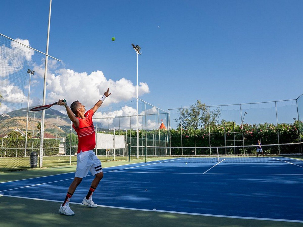 Il resort propone i seguenti servizi: free wi-fi, campo da tennis (su prenotazione), calciobalilla, piscina, ricevimento 24h, ampio solarium attrezzato con ombrelloni, sdraio e lettini, 2 ascensori, bar con terrazza vicino alla piscina, lavanderia (a pagamento con servizio esterno), baby sitting (a pagamento-su richiesta), parcheggio privato interno non custodito (a pagamento, fino ad esaurimento). A circa 150 metri dalla bellissima spiaggia di Cala Battistoni, caratterizzata da sabbia fine e mare dolcemente digradante. In loco, su richiesta e a pagamento è possibile noleggiare lettini e ombrelloni.