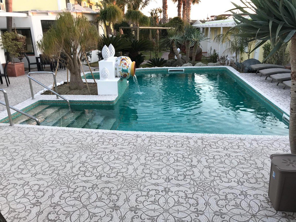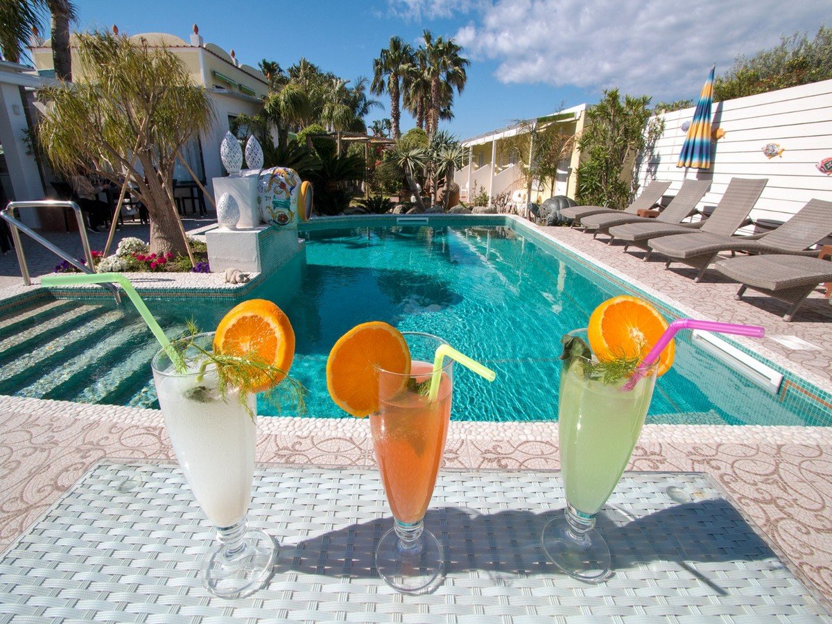 La struttura, di nuovissima ed elegante costruzione, offre un soggiorno all'insegna del benessere e del relax. L'albergo si affaccia sul versante occidentale dell'isola, in prossimità di bellissime spiagge (100 mt. dal mare) ed a 10 minuti dal centro storico. Immerso nel verde, è circondato da un giardino che si estende su 4000 mq. dove si possono ammirare piante particolari, dall'esotico al mediterraneo con alberi che con le loro forme esprimono tutta la loro bellezza e naturalezza