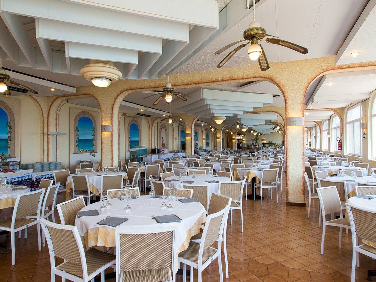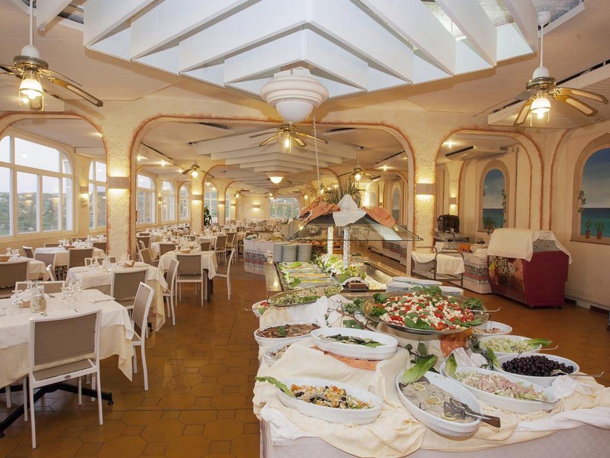 Il ristorante principale del resort si distingue per la sua proposta di buffet internazionale, per soddisfare anche i palati più esigenti. È disponibile un menu per bambini. Bevande ai pasti incluse (Vino ed acqua in caraffa a volontà durante i pasti). N.B. per motivi igienico-sanitari, la gestione alberghiera non fornisce il servizio di Packet-Lunch sostitutivi, neanche il giorno di partenza. Ristorante "Donna Floriana" (a pagamento): cucina mediterranea con specialità di carne e pesce: godetevi i sapori della tradizione e della cultura sarda con un raffinato menù degustazione. Le "Terrazze Ristorante": specialità della cultura sarda e a cena anche pizzeria (pizzeria a pagamento); "Beach Restaurant": presso il ristorante Griglia di Nettuno potrete gustare grigliate di carne e pesce ed insalate Il ristorante ha una grande terrazza esterna con una vista mozzafiato sul mare (Vino ed acqua in caraffa a volontà durante i pasti , disponibile su prenotazione ). L’hotel non è specializzato nel predisporre appositi cibi privi di glutine; inoltre, per quanto riguarda i cibi serviti al tavolo e/o a buffet non è garantita la totale assenza di contaminazione crociata nella fase di preparazione e/o di somministrazione delle pietanze. Si fa presente però che al ristorante sarà possibile trovare una grande varietà di alimenti, fra cui anche pietanze che solitamente non contengono glutine oltre che alcuni prodotti di base dedicati. Per tale motivo ed in base alla gravità della celiachia sofferta, Si invita i clienti a segnalare in fase di prenotazione affinché, all’arrivo in struttura, il direttore unitamente allo chef possano valutare un menu personalizzato. Per ogni precauzione, qualora il cliente desiderasse portare in hotel degli alimenti specifici (unitamente a contenitori e posateria personali) sarà cura dell’hotel predisporne l’utilizzo da parte del personale per la preparazione dei pasti. Zona riservata ai bambini 0-2 anni (presso ristorante centrale Perseo): Sarà presente una zona nel ristorante dove le mamme possono andare per la preparazione dei cibi e per i pasti degli Infant con prodotti base forniti dall’hotel (es: prosciutto, mozzarelline e formaggio, passato di verdure, pomodoro, insalate o verdure bollite, pastine). Bar: Nei nostri bar, di cui uno situato in spiaggia, puoi fare uno spuntino durante la giornata, bere un caffè, mangiare un gelato o sorseggiare un drink al calar del sole.