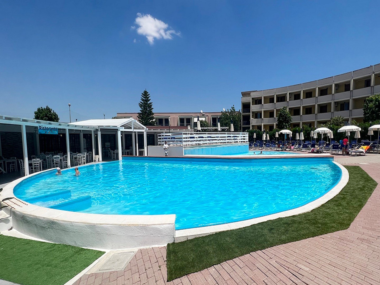 La struttura, pensata per il benessere di famiglie, coppie o comitive in cerca di divertimento dispone dei seguenti servizi: Reception h24, ascensore, ristorante, bar in piscina, parcheggio interno non custodito gratuito, garage (con supplemento giornaliero di € 5,00 al giorno), piscina di forma circolare con zona riservata ai bambini, animazione diurna e serale, baby club, miniclub, junior club, tennis, calcetto, pallavolo, area video giochi e parco giochi per bambini, terrazzo solarium attrezzato, sala tv, connessione wi-fi nella hall ed in piscina. La spiaggia è situata a circa 1,2 km dalla struttura ed è raggiungibile in 5 minuti con servizio navetta ad orari prestabiliti. Il servizio spiaggia è incluso nella Tessera Club e comprende 1 ombrellone e 2 lettini a camera in file in base alla disponibilità.