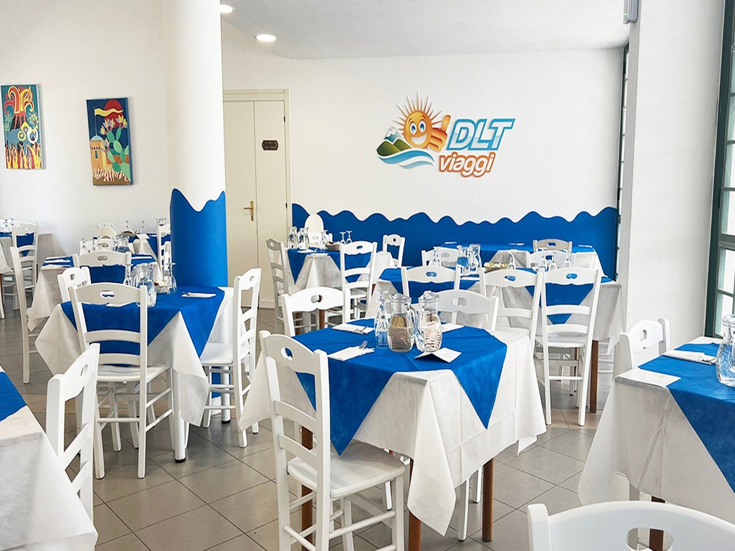 Presso la sala ristorante, il trattamento offerto è di Pensione Completa, prima colazione a buffet con distributori automatici di bevande calde e fredde, pranzo e cena composti da 4 portate a scelta tra due menù comprensivi di: entree, un primo, un secondo con contorno, frutta o dolce, con bevande incluse ai pasti (acqua e vino in caraffa).