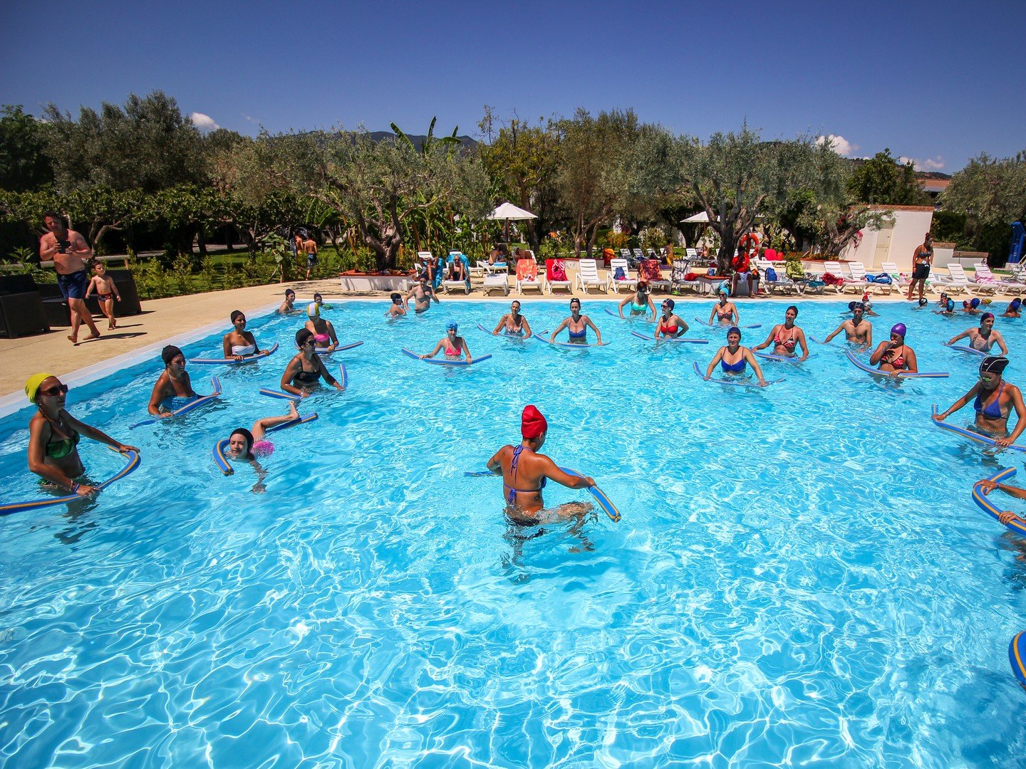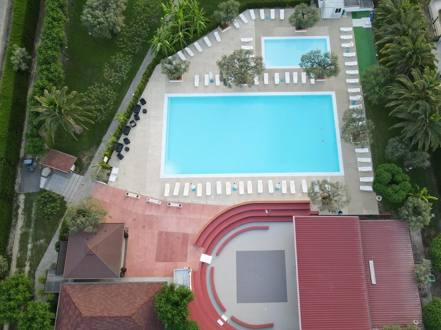 A disposizione dei clienti: reception, ascensore corpo centrale, parcheggio interno incustodito, fotografo, area WIFI gratuita, servizio medico a richiesta a pagamento; 1 campo polivalente tennis/basket in cemento, 1 campo da calcio a 5 in erba sintetica con illuminazione notturna, 1 campo da pallavolo in erba sintetica, beach-volley, canoe, fitness, ping-pong, bocce in spiaggia, calciobalilla, piscina per adulti (prof. m. 1,20-1,60), piscina per bambini (prof. m. 0,70), parco giochi, animazione diurna e serale. Per i più piccoli vengono organizzate attività di intrattenimento tipo Baby Dance e sono a disposizione giochi, spazi e strutture attrezzate. Mini Club 3 -12 anni e Junior Club 12-16 anni. A 500 mt. negozi, chiesa, farmacia e bancomat. SPIAGGIA: di fronte al villaggio, con attraversamento del lungomare, ampia e di sabbia bianca eccetto sulla battigia dove sono presenti piccoli ciottoli misto sabbia. Attrezzata con 1 ombrellone, 1 sdraio ed 1 lettino per camera; docce, servizi, spogliatoio ed infermeria. Prima e seconda fila con supplemento fino ad esaurimento e con un noleggio di 2 teli mare a camera a soggiorno inclusi (cambio extra a pagamento). Noleggio teli mare (con cauzione).