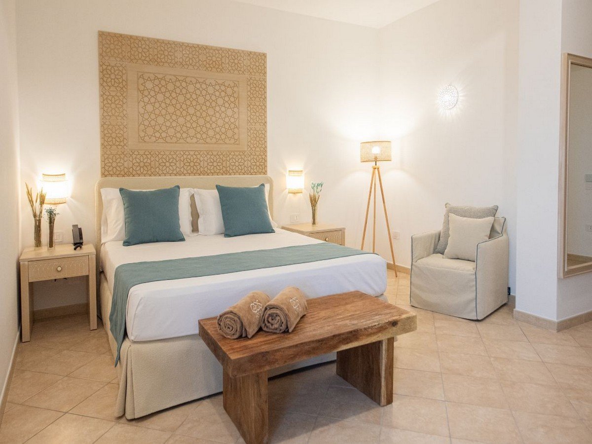 Le Camere Comfort sono la soluzione perfetta per chi cerca un ambiente raffinato e ben organizzato. Possono ospitare da 2 a 4 persone in un unico spazio arredato con cura, con finiture e arredi che richiamano con delicatezza lo stile saraceno, dotato di tutti i servizi per un soggiorno senza pensieri: aria condizionata, cassetta di sicurezza, minibar, servizi privati con doccia. Le Camere Comfort con balcone sono la soluzione perfetta per chi cerca un ambiente raffinato ed esclusivo. Possono ospitare da 2 a 4 persone in un ampio spazio arredato con cura, con finiture e arredi che richiamano con delicatezza lo stile saraceno, dotato di tutti i servizi per un soggiorno senza pensieri: aria condizionata, cassetta di sicurezza, minibar, servizi privati con doccia con il valore aggiunto di un balconcino sullo spazio anteriore dell’Hotel con piscina e giardini.