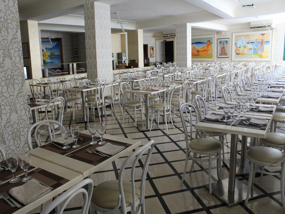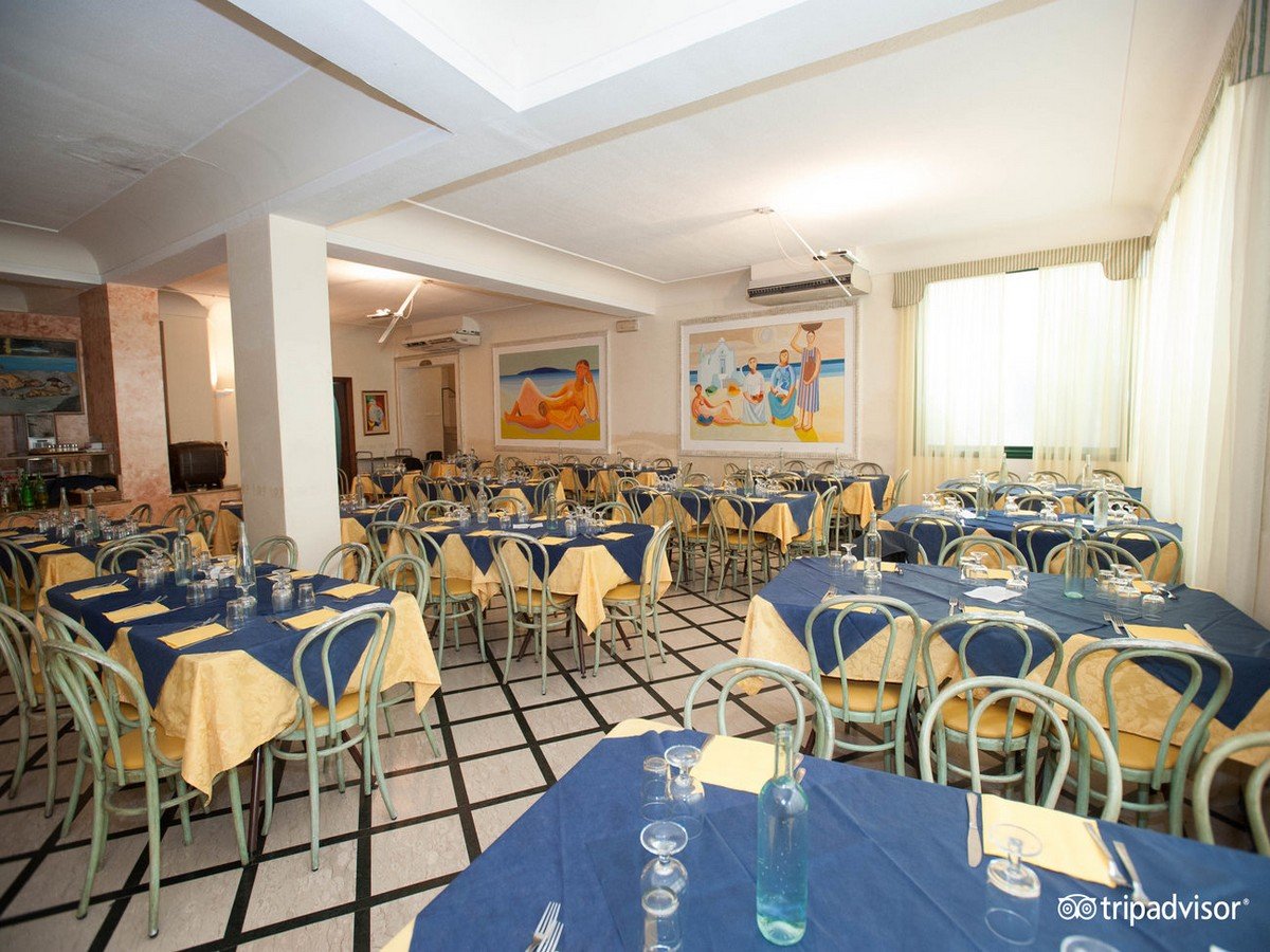 Il ristorante, arredato in stile sobrio e moderno. arricchito dai colori del territorio raffigurati nelle delle tele di artisti locali. La Cucina, dai sapori semplici con richiamo ai piatti regionali ed della tradizione italiana. Colazione continentale a buffet fino al cambio di normative verrà servita al tavolo, le bevande saranno servite ai distributori da un nostro addetto al servizio). Buffet di verdure in supporto ai pasti. Menu' giornaliero a scelta multipla fra due primi e due secondi piatti.