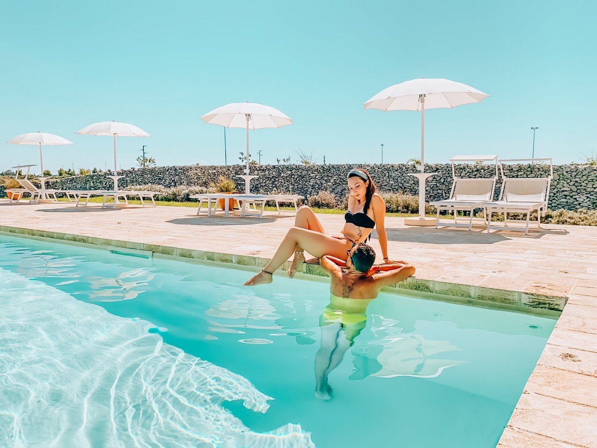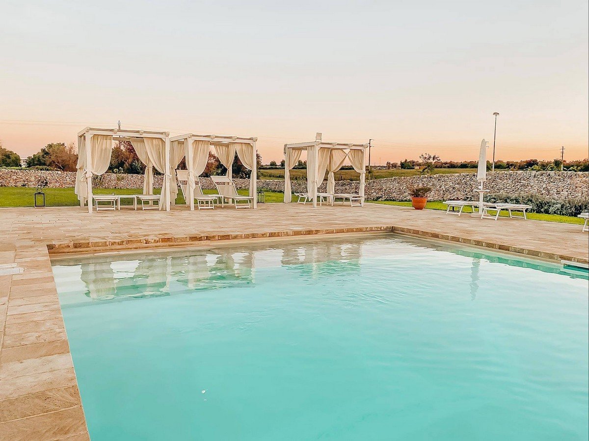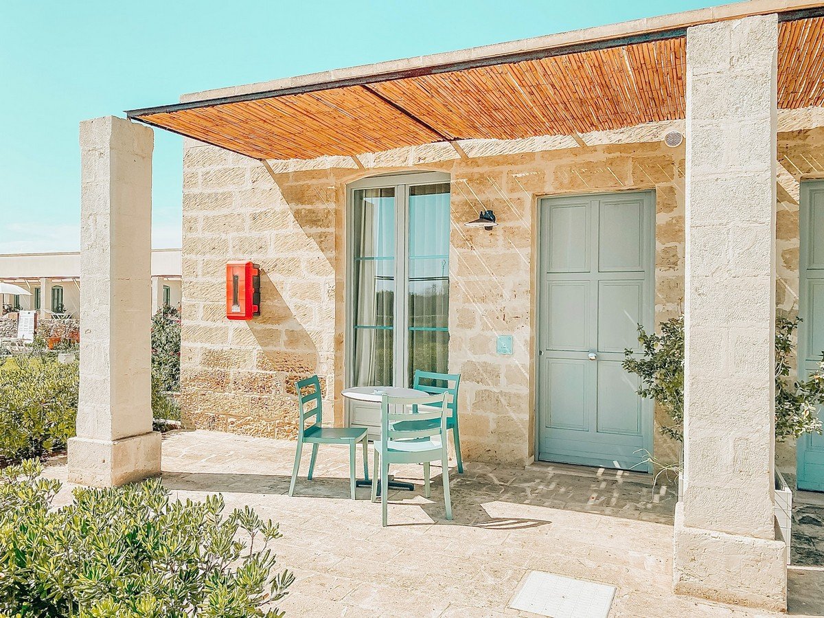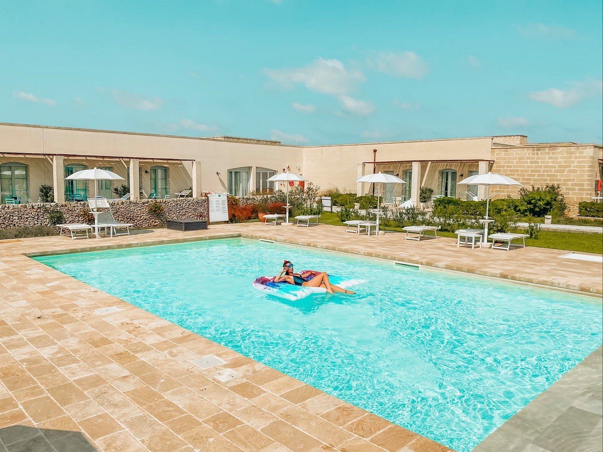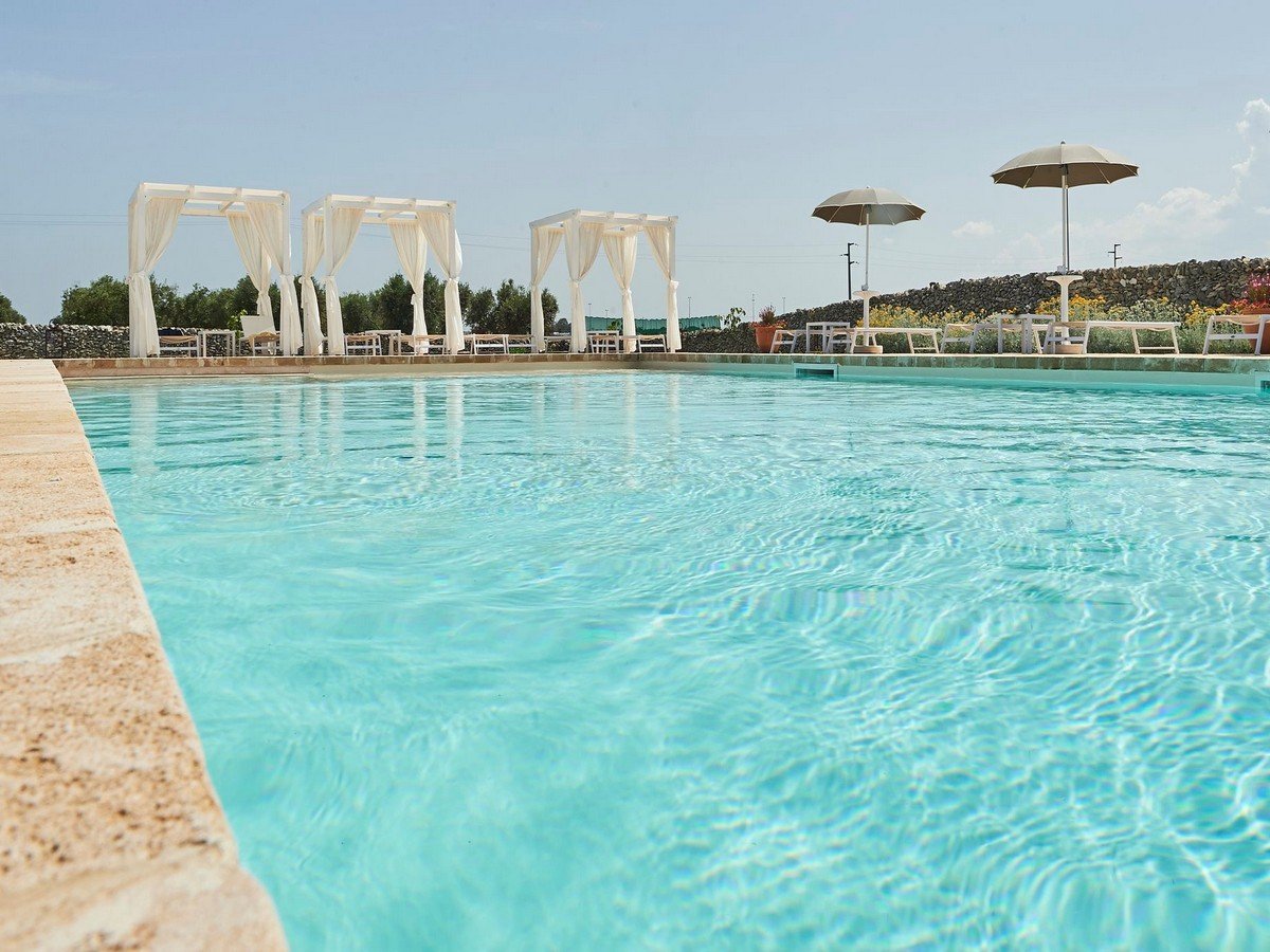 Relais formato da un hotel con camere distribuite in orizzontale su un unico livello e da un’antica masseria ristrutturata, immersa in un uliveto, con camere, sala ristorante e centro benessere.