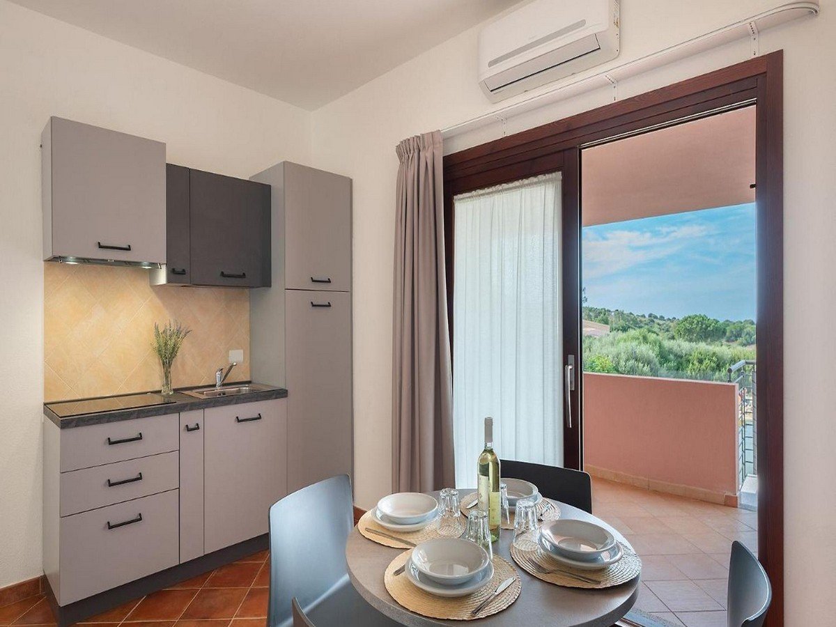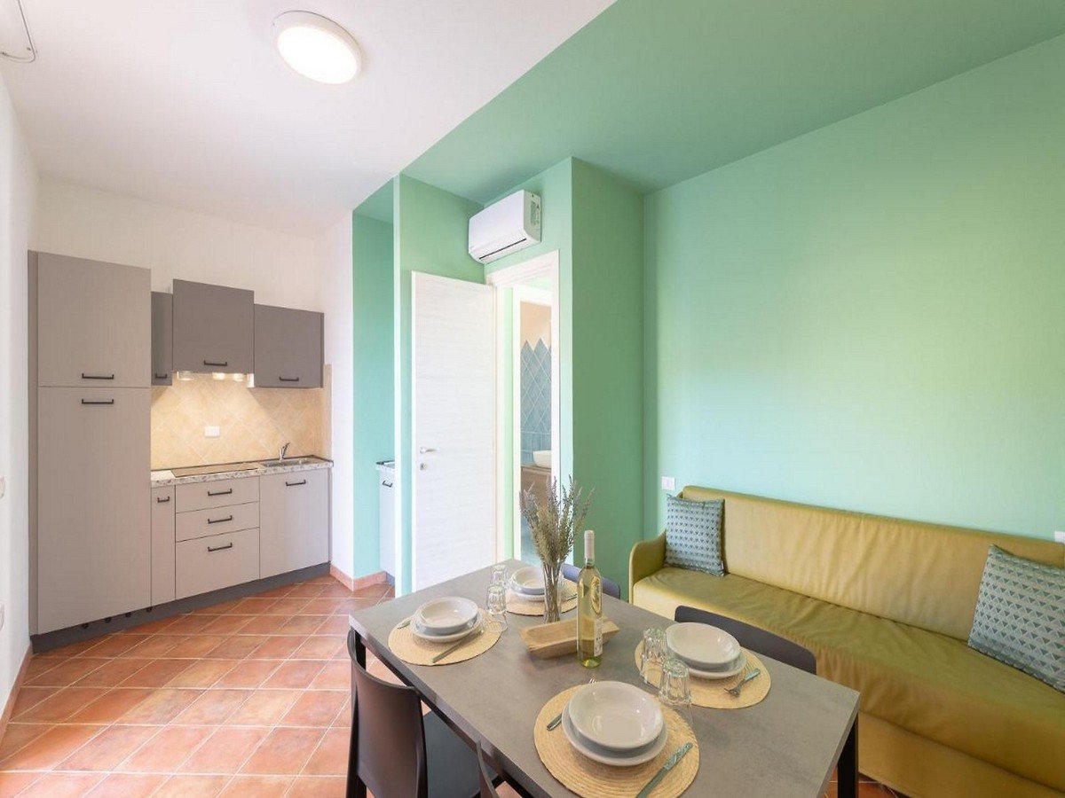 Gli alloggi, arredati in elegante stile moderno, sono inseriti in edifici a due piani con ingresso indipendente e dispongono tutti di aria condizionata (uno split nei bilocali – 2 split nei trilocali), angolo cottura con piano a induzione, forno a microonde, TV, veranda o balcone, quasi tutti con vista panoramica sul mare. In alcuni appartamenti il bagno potrebbe essere ubicato all'interno della camera da letto.