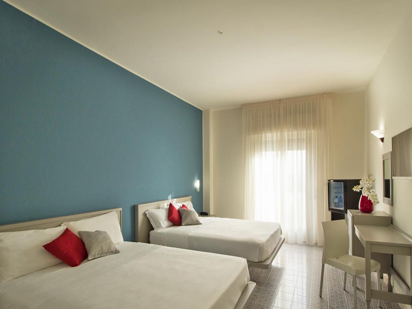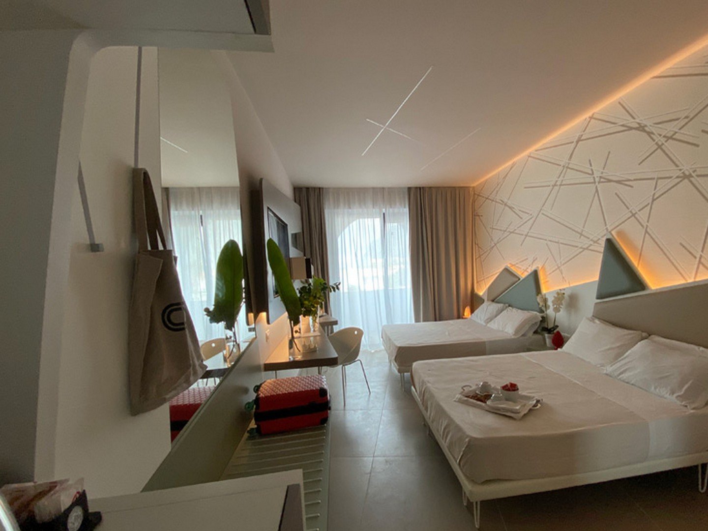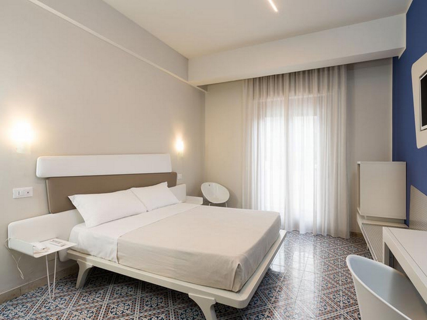 Le 237 camere a vostra disposizione sono di evidente impronta mediterranea, minimali negli arredi e con richiami stilistici ed elementi decorativi legati ai colori della nostra terra. Ampie e solari, le camere del nostro hotel hanno finestre o pratici balconi e offrono una splendida vista mare o una confortevole vista giardino, nel rigoglioso parco di vegetazione mediterranea. Le camere sono disponibili con sistemazione doppia/matrimoniale, tripla e quadrupla e distinte per tipologia in Standard, Classic e Superior. Dotate di climatizzazione con controllo individuale per camera, TV 32”, telefono, cassaforte, connessione WI-FI, frigobar e servizi privati con doccia o vasca, le nostre camere costituiscono un alloggio confortevole per la vostra vacanza o per i vostri soggiorni business.