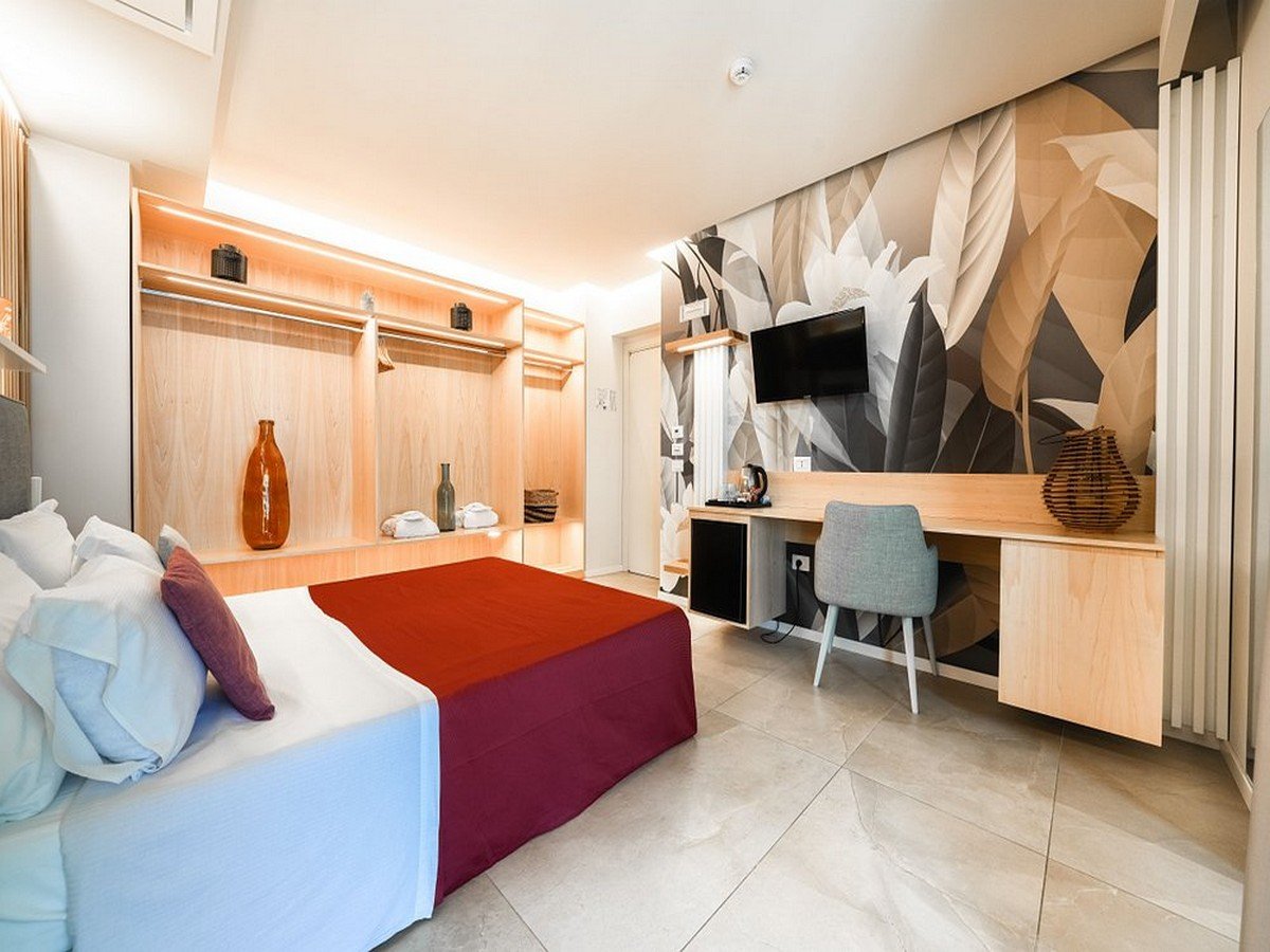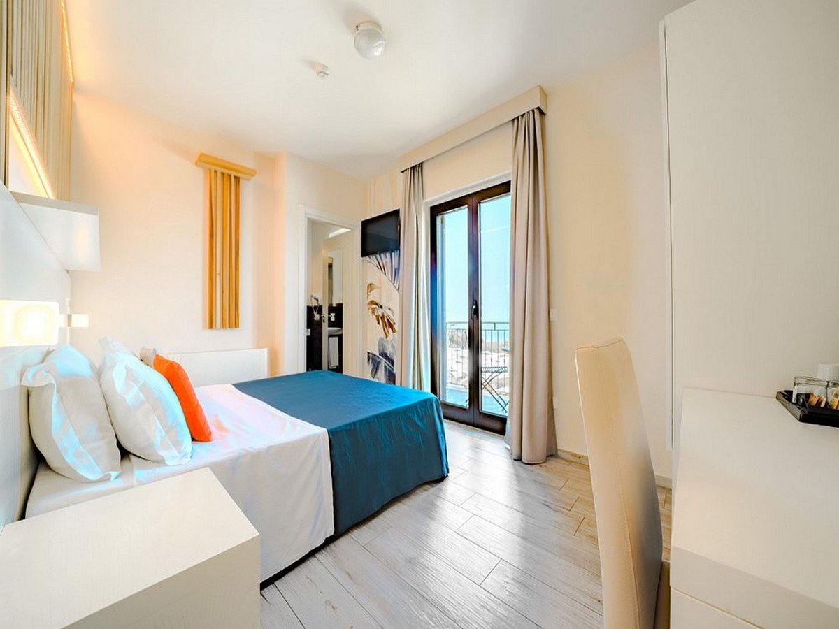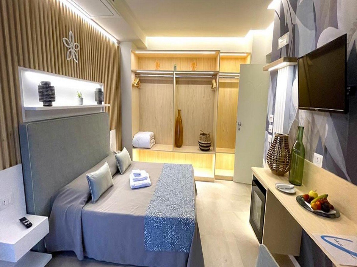 Le camere si caratterizzano per lo stile essenziale e accogliente con colori delicati che richiamano i toni del mare e delle spiagge. La struttura dispone diverse tipologie: camere Classic, camere Classic Vista Mare (solo su richiesta), Comfort e Superior. Le camere sono dotate di Wi-fi, Frigobar, aria condizionata, TV Lcd, telefono, cassaforte, bagno privato, phon