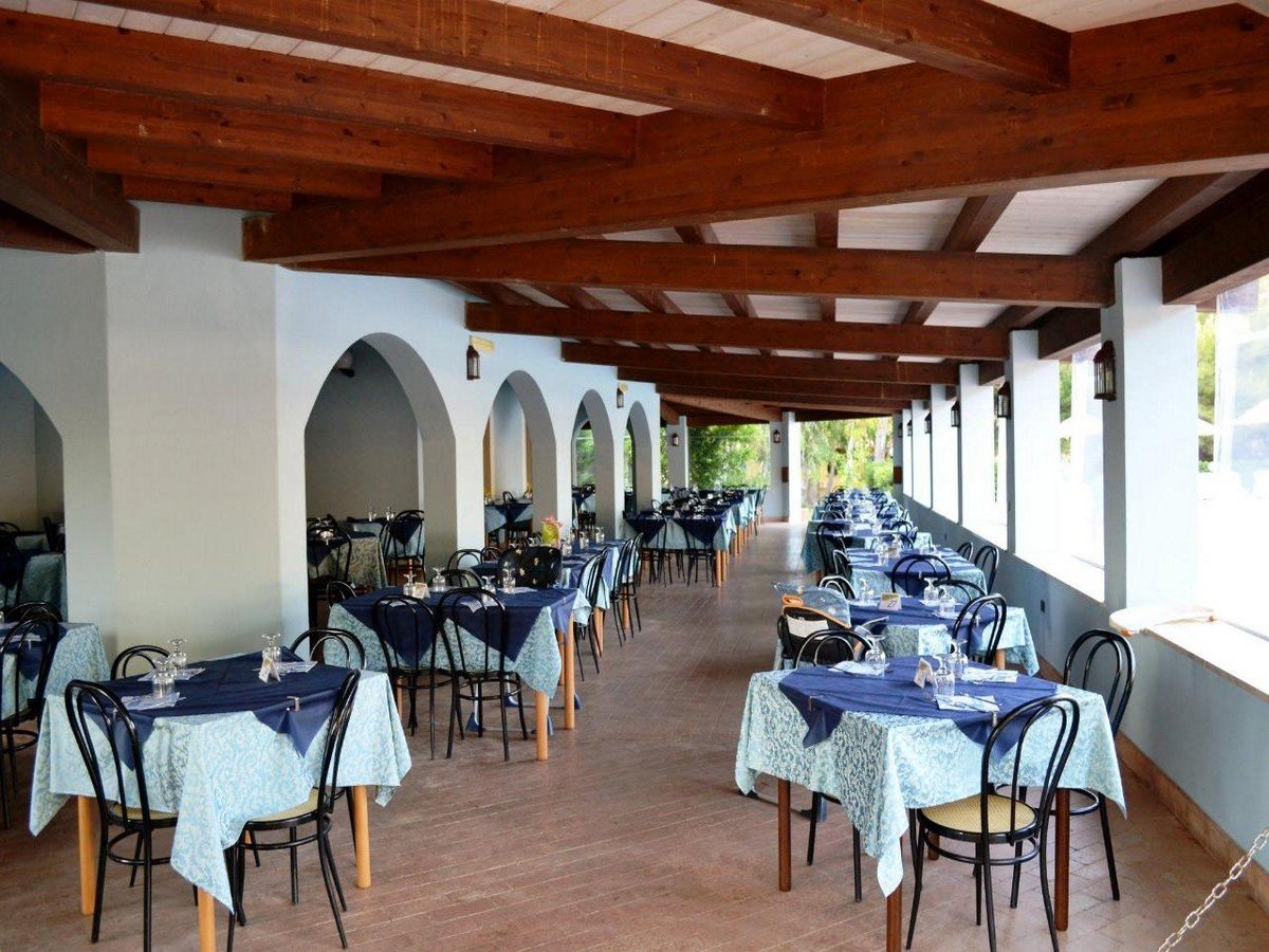 Ristorante con sala in veranda esterna coperta dove sono ubicati i tavoli da 4 persone, trattamento di pensione completa con prima colazione, pranzo e cena a buffet servito da personale (vino ed acqua in caraffa inclusi); pranzo e cena con scelta di primi e secondi piatti di carne e di pesce, contorni con verdure di stagione, formaggi e prodotti tipici calabresi. A disposizione spazio biberoneria, aperta 24 ore su 24 e senza assistenza, attrezzato con forno microonde, scaldabiberon, sterilizzatore e mixer per la preparazione di pappe per i più piccoli. Durante l’orario dei pasti vengono forniti pastine, brodi e passato di verdure, passato di pomodori, latte fresco, intero e parzialmente scremato, yogurt. Non sono disponibili omogeneizzati, formaggini, succhi, merendine e latte prima infanzia sia liquido che in polvere.