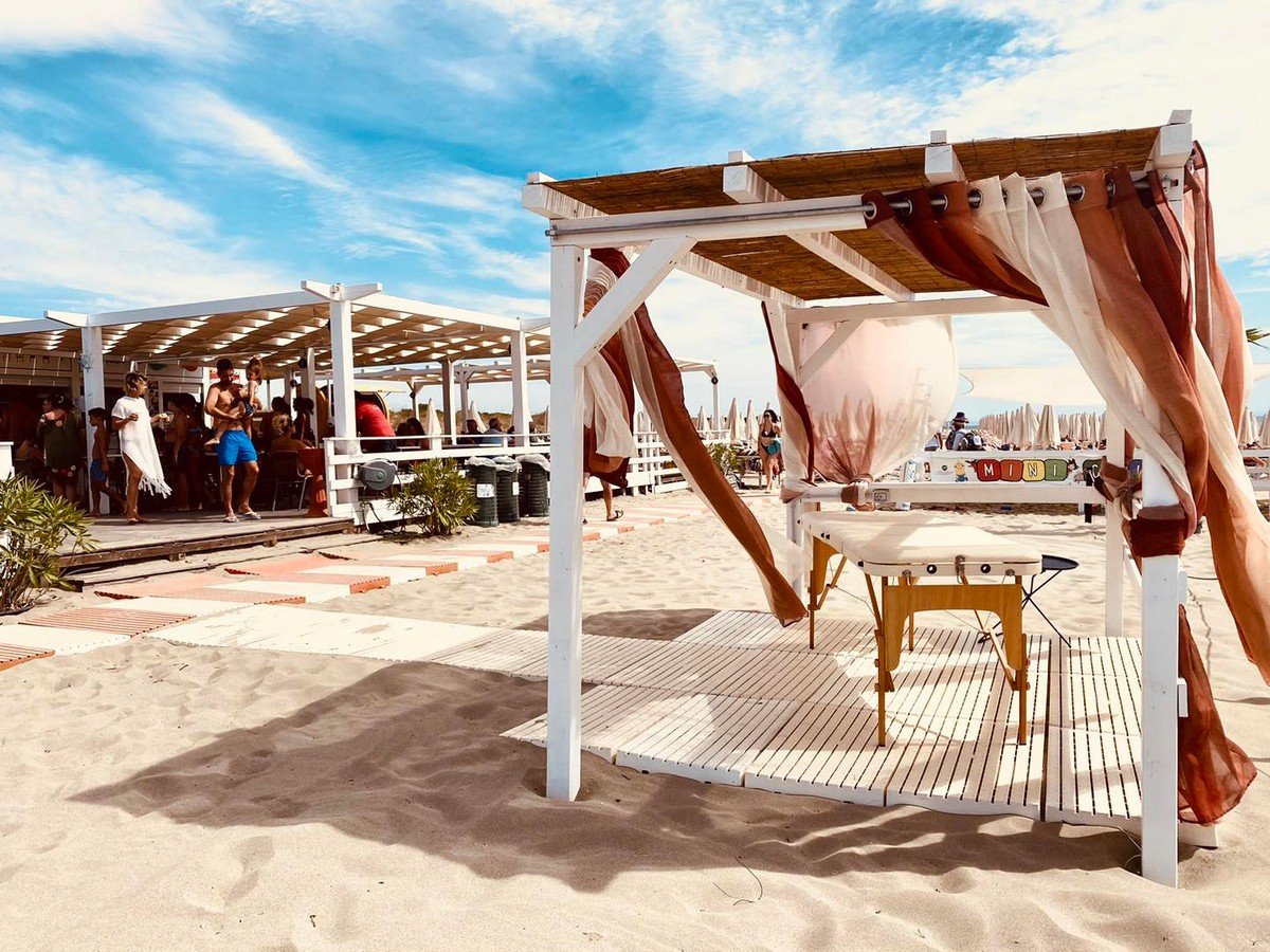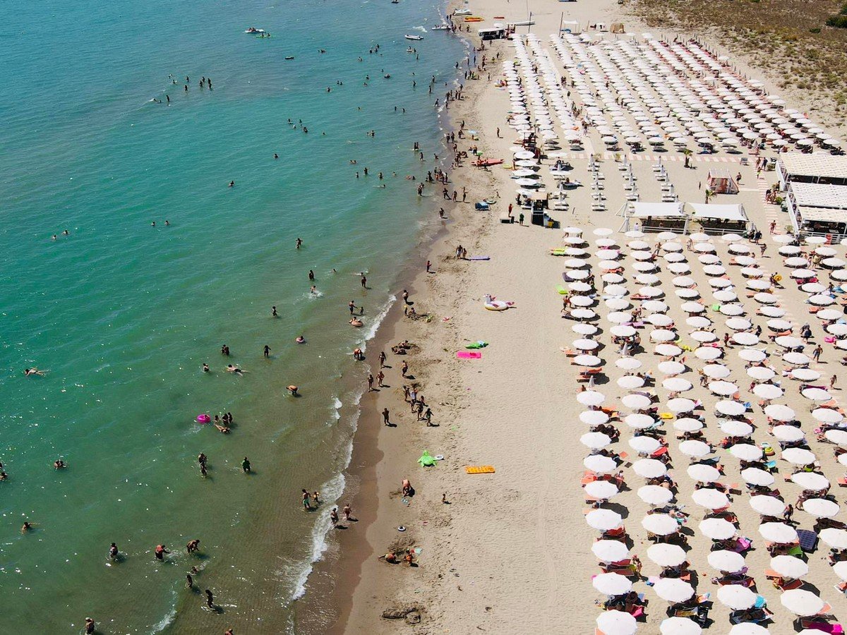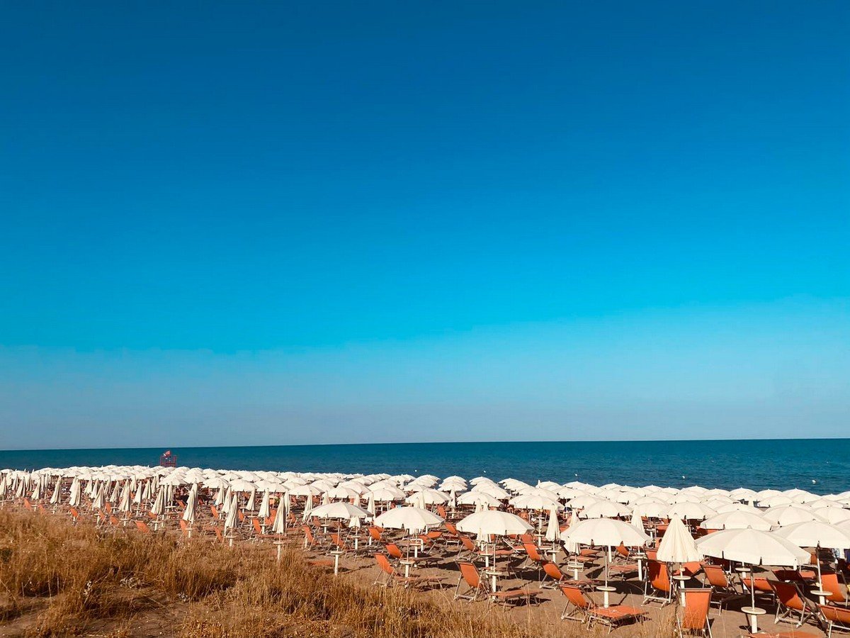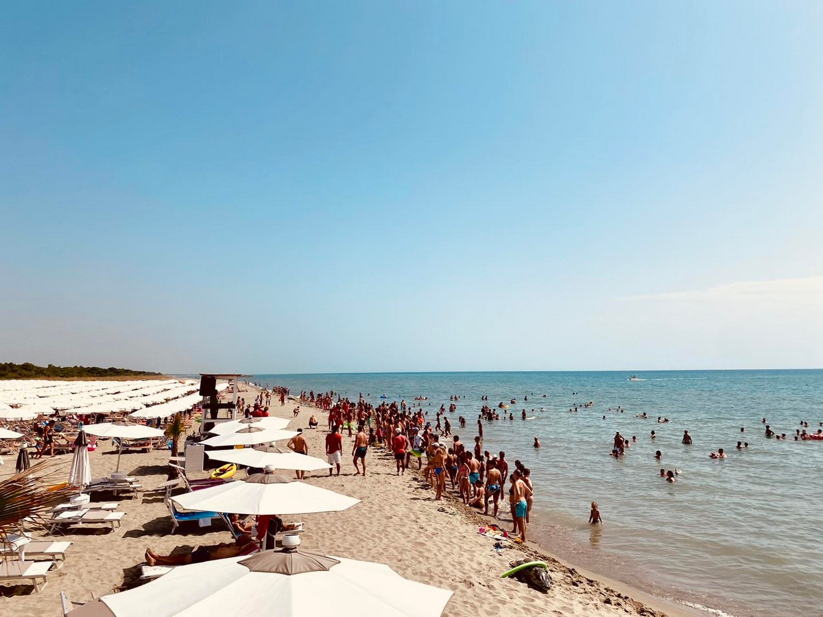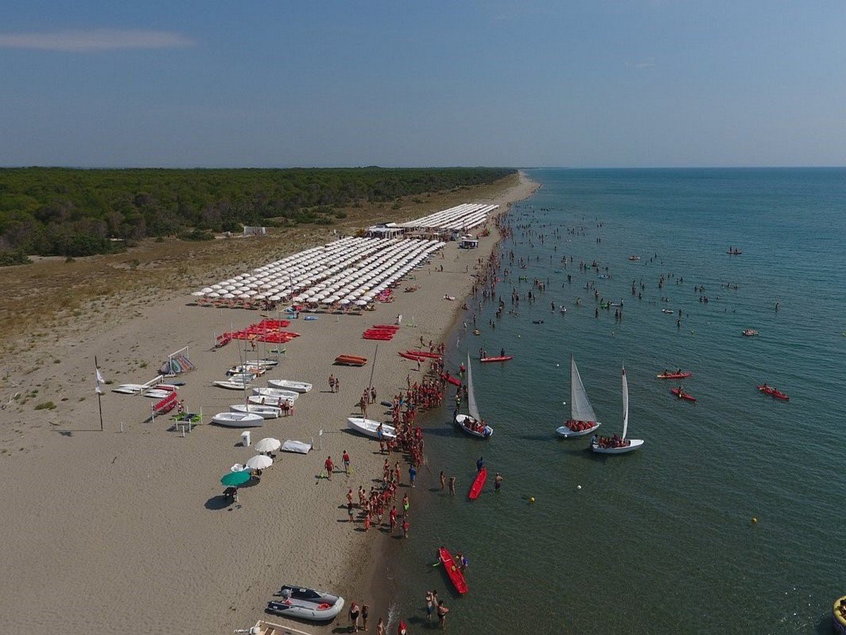 Spiaggia di sabbia fine a ridosso di una pineta oasi del WWF con un ombrellone, un lettino ed una sdraio per camera dalla seconda fila in poi; assegnazione il giorno dell'arrivo; raggiungibile anche a piedi, distanza circa 700 mt dal cancello mare; allestita con ampio bar, docce e servizi igienici; navetta da e per la spiaggia dalle ore 08.30 alle ore 13.00 e dalle ore 15.30 alle ore 19.00; navetta elettrica ad impatto ecologico zero; pranzo sostitutivo in spiaggia (su prenotazione nei mesi di luglio e agosto); possibilità di prenotare ombrellone VIP con supplemento; base nautica con canoe, pedalò e approccio alla vela a vostra completa disposizione con un team di istruttori della Federazione Italiana Nuoto che vi faranno vivere il mare in tutto il suo splendore; seawalking, tecnica di passeggiata che si pratica con le gambe immerse nell’acqua di mare con l’ausilio di appositi bastoni, funzionale sia per la tonificazione muscolare che per il miglioramento posturale.