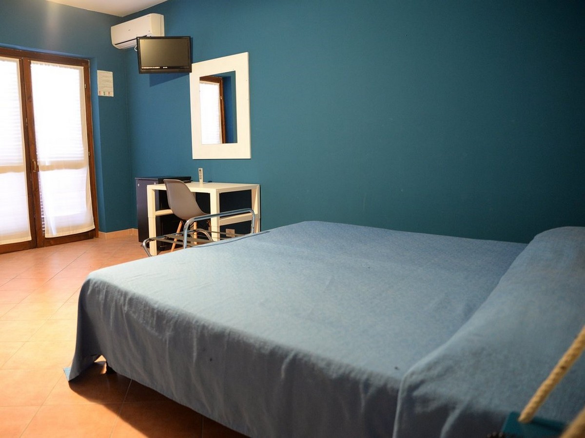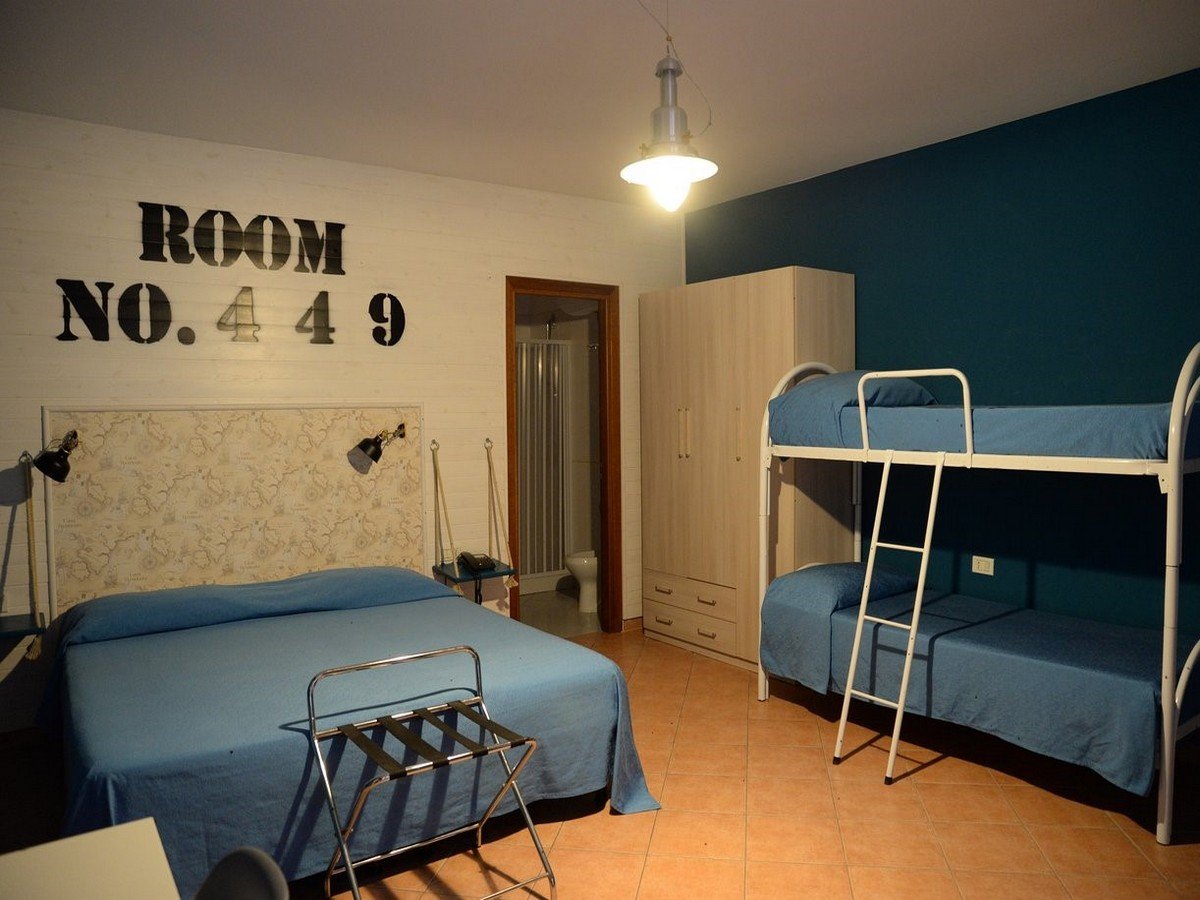 Camere doppie, triple e quadruple (queste ultime disponibili solo a piano terra con letto a castello o 2 letti singoli bassi; camere triple e triple più culla al primo piano - ascensori non presenti). Camere per 5 persone su richiesta, previa disponibilità; si tratta di quadruple adattate a quintuple con letto a castello + 1 letto singolo o 3 letti singoli bassi, unico vano e unico bagno. Tutte le camere sono arredate in stile mediterraneo, hanno servizi con doccia dotata di box, telefono, aria condizionata, Tv, frigorifero, asciugacapelli, wi-fi, terrazza o patio con tavolino e due sedie. Le segnalazioni circa l’assegnazione della camera non sono garantite e dipendono dalla disponibilità dell’albergo; cambio camera a pagamento Euro 25 a camera. Disponibili su richiesta camere per disabili (2/4 persone) con sedia Job ed ombrelloni riservati in spiaggia.