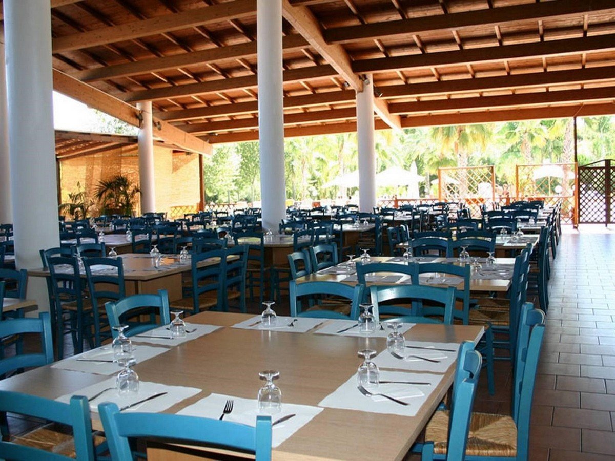 Grande ristorante che si sviluppa sia all’interno che con veranda con vista sulla piscina olimpionica, totalmente climatizzato. Colazione, pranzo e cena con servizio a buffet. Vino ed acqua in dispenser a volontà ai pasti insieme a cola, aranciata, gassosa e birra alla spina. Vengono proposti piatti della cucina lucana con una cena tipica a settimana e tipici mediterranei con antipasti, grigliate di carne e pesce grazie ad uno spazio esterno adibito alla griglia, buffet di verdure e dolci a cena. Celiaci ed intolleranze/allergie alimentari: non possiamo garantire l'assenza di contaminazione non avendo una cucina separata; forniamo una linea di prodotti base per colazione, pranzo e cena; far riferimento sempre al maitre in sala per i pasti; possibilità di pasti pre-confezionati. Nella biberoneria troverete: sterilizzatore, frullatore, fasciatoio, forno a micro-onde, scalda biberon, cucina a gas, frigorifero, tovagliette, posate, tavoli, sedie, lavabo, seggioloni. Negli orari dei pasti principali a disposizione delle mamme un’assistente per la preparazione delle pappe, saranno serviti brodi vegetali e di carne, passato di verdure, pastine, fettine di carne, hamburger, pesce, affettati, latticini, latte, biscotti e frutta fresca. Non compresi nel forfait, omogeneizzati, latte fresco e latte per la prima infanzia sia liquido che in polvere. Noleggio passeggini previa disponibilità al ricevimento.