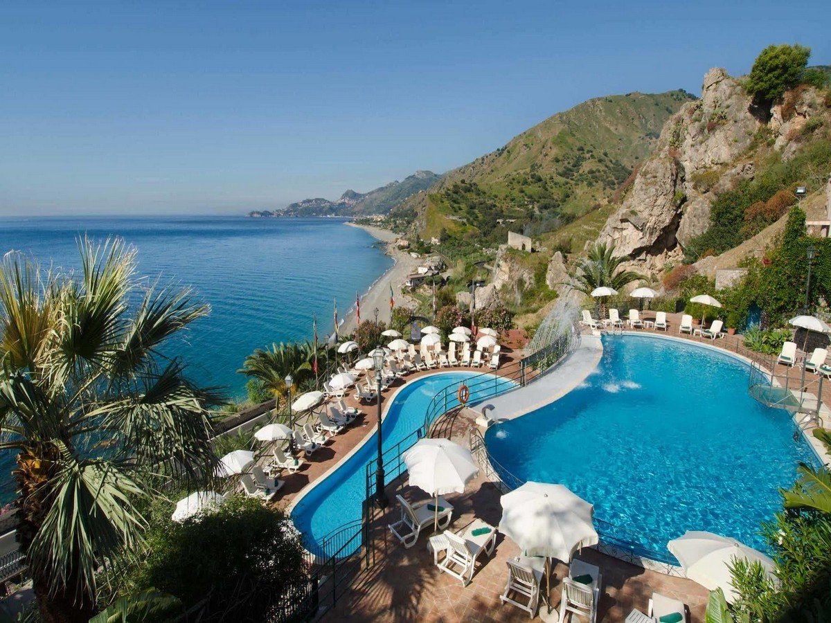 Baia Taormina CDSHotels , con i suoi ampi archi e pergolati, i suoi rivestimenti in pietra locale e rifiniture in cotto artigianale siciliano, si adagia sulla scogliera che sovrasta la baia di Taormina (ME) dalla quale prende il nome.
