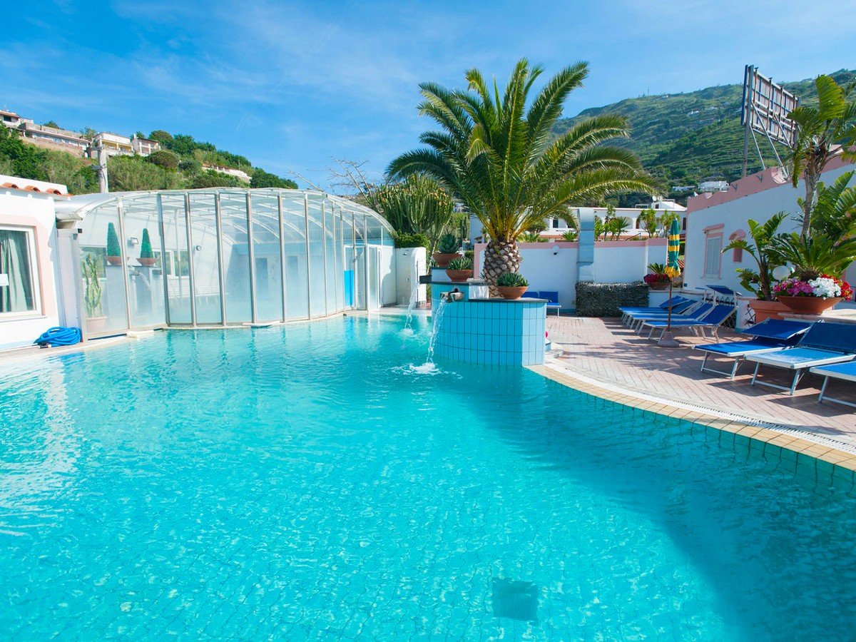 Situato a sud est dell’isola d’Ischia a Forio, in una zona tranquilla, tra gli opulenti vigneti ischitani, a soli 500 mt. dalla Baia di Sorgeto, famosa per le sue vasche naturali d’acqua termale direttamente nel mare, che offrono la possibilità di fare il bagno anche nei periodi meno caldi. Questo bellissimo albergo e' immerso una splendida vegetazione ricca di piante grasse, buganvillee ed una splendida flora mediterranea. Un vero e proprio villaggio che offre servizi quali animazione per adulti, ampi spazi ricreativi e ottima cucina, animazione per bambini e non solo, e' un albergo consigliabile ad una vacanza sia per famiglie che per giovani.